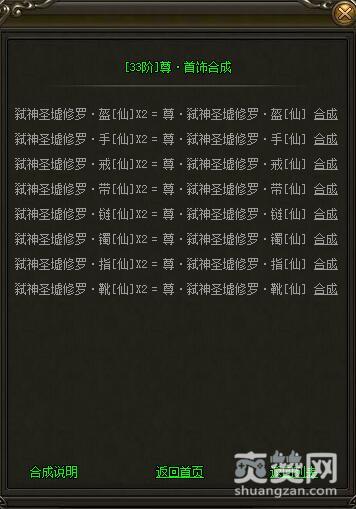 在装备合成中,玩家可以将相同阶级的2件装备放在背包中进行合成,可合成的最低装备等级需要29阶以上的武器、盔甲,33阶以上首饰装备。