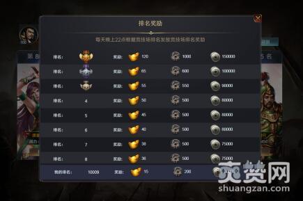 另外,在竞技场中大家还可消耗铜币刷新列表的敌人。通过点击“排名奖励按钮”预览排名奖励,点击对战记录可查看攻击记录及防守记录,点击“竞技商店按钮”可跳转到商城竞技商店消耗竞技币购买商品。
