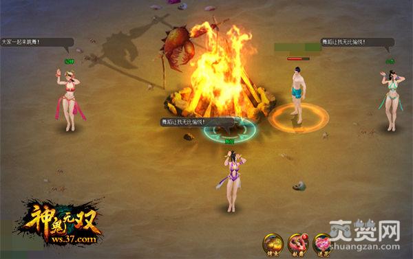 酒足饭饱之后,玩家还可选定对象,进行献舞。无论是“眉飞色舞”,还是“惊鸿一现”,就算是“霹雳鬼步”,只要完成献舞,献舞玩家就能获得一定的经验奖励。另外,在37《神鬼无双》的篝火晚会中,玩家还可以向其他玩家送花,送花还能增加双方亲密度,如此花前月下,快来艳遇吧!