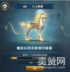 喂养坐骑到祝福值满后,可以消耗进阶丹将坐骑进阶,激活更强大,更酷炫的坐骑,并且解锁新的坐骑特性和坐骑技能。而若想获得草料和坐骑进阶丹,则可以通过挑战魔将吕布或是商店内购买等方式获得。