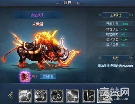 在43u《三国群英传》的坐骑界面右上角,还可以打开珍兽类坐骑。只要获得珍兽卡道具,便可以直接激活该珍兽坐骑。这些珍兽类坐骑不但外观更加狂拽酷霸,而且其中的部分珍兽还拥有强大的专属特性效果!