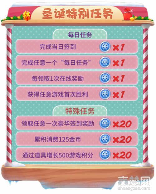 活动期间,完成圣诞特别任务,都可以获得“圣诞币”,使用圣诞币兑换装饰物品,搭建圣诞树!