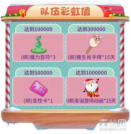 如果队伍彩虹值达到一定数量,队伍内所有玩家均可领取对应奖励。奖励与队伍彩虹值每天重置: