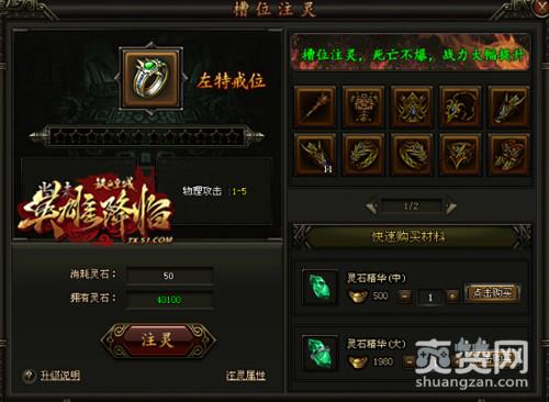 如此激烈的星球大战所获得的灵石,究竟有何用处,竟吸引无数勇士前仆后继,原来51《铁血皇城》灵石精华可用于槽位注灵,注灵可获得强大攻击属性加成,注灵属于槽位注灵,死亡注灵是不会掉落的,且属性永不消失,但是要注意的是虽说注灵死亡不会掉落,死亡装备还是有几率掉落的哦!每件装备槽位最高可注灵至12星,注灵需要的灵石除了炼狱之路可以获得,还可通过元宝直接购买和城主之刃活动获得。全身17件装备注灵达到一定等级可激活注灵套装属性,等级越高,套装属性越高,不同职业增加的属性不同。
