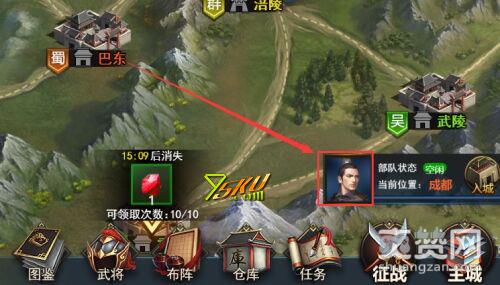 部队移动的第一种方法是召集法。这个方法大家比较常用,因为它是新手教程里面教的移动方法。这个方法操作起来有些繁琐:首先玩家要选中目的地,点击“查看”进入城池,再点击“召集”才能移动部队。如果目的地与部队当前所在城池之间的路不通的话,那么移动也不会成功。