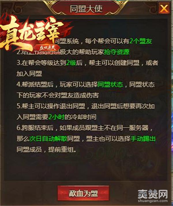 合服后开启帮派结盟系统,2级及以上帮会的帮会会长可以前往跨服主城地图同盟大使NPC处创建同盟,创建后别的帮派可以申请加入同盟,一个同盟的帮会的玩家可以把PK模式切换到同盟模式,可以攻击盟友以外的玩家但不会对盟友造成伤害。不仅同服的帮派可以结盟,跨服不同服的帮派也可以达成结盟。跨服重新匹配后,同盟将会被解散,帮派间需要重新结盟。