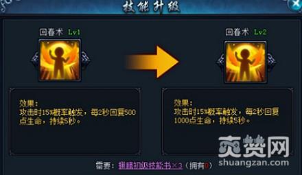 翅膀技能可使用技能书来提升等级,技能等级越高技能属性越强。
