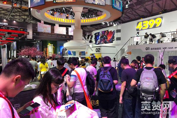 4399展台的休闲体验区,人头攒动,听说有小礼物拿呢!