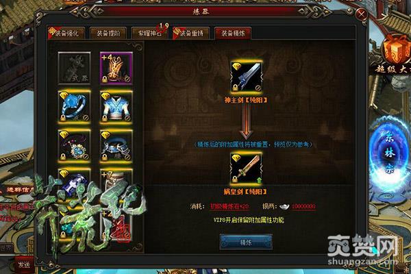 玩家对装备进行精炼,可重置装备的附加属性,此过程中需要消耗银两和精炼石,后者可通过试炼征途、合成等方式获得。