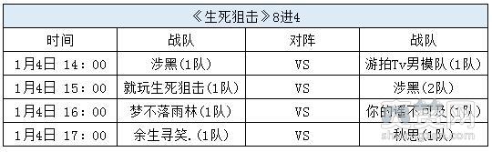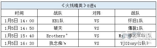 1月5日,《火线精英》第六届战队争霸赛的比赛也到了8进4的赛程。首先公布一下目前8强的战队名单: