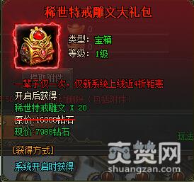 传说特戒雕纹升级:需要消耗传说雕文石,雕文升级后可以增加物理攻击、物理防御、最大生命和爆伤抵抗属性。传说雕文石可以通过活动产出。传说特戒雕文大礼包:传说特戒雕纹*30,原价:15888钻石,现价:6988钻石。