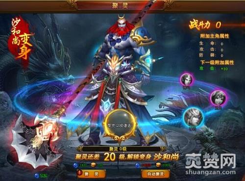 点击主界面的“前往聚灵”按钮可以打开聚灵界面,消耗聚灵石或是铜钱可升级聚灵等级。提升聚灵等级可增加主角属性,同时大部分变身人物也由聚灵达到一定等级后解锁。此外,点击已激活变身主界面还可对变身人物进行进阶和升星操作。