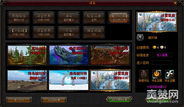 秘境寻宝重大变化,12超级魔头、6大破坏神加入私人秘境,每天一次,无需与人争抢,无需蹲点守候,海量宝物即可收入囊中,超级魔头秘境还可以使用钻石购买次数。