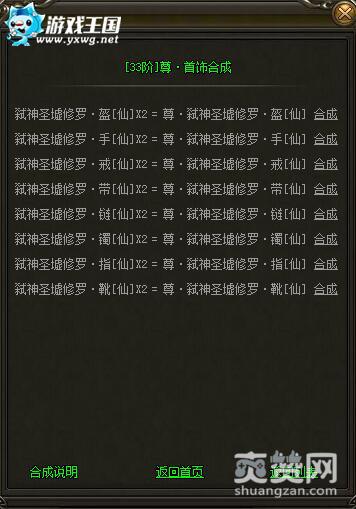 在装备合成中,玩家可以将相同阶级的2件装备放在背包中进行合成,可合成的最低装备等级需要29阶以上的武器、盔甲,33阶以上首饰装备。