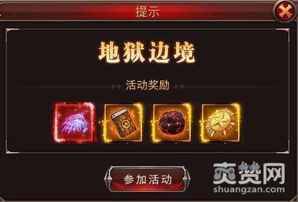 地狱边境是一个跨服定时活动,活动开启时可以通过界面中间的提示面板点击“参加活动”来打开地狱边境的面板。