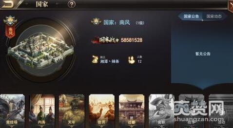通过43u《三国战》主界面的国家按钮,大家可以进入国家系统。在国家系统系统界面,大家可以看到竞技场、内务、天牢、世界、迁都等玩法,下面就来主要介绍一下这几种玩法: