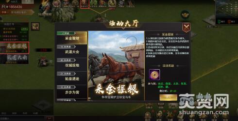 采金掘银,是43u《三国战》中发家致富的必玩活动。采金掘银活动中将会每3分钟在场地内刷新出大量资源矿点,点击矿点上方的采集按钮即可进行采集。采集完成之后,大家还需保护资源马车不被其他其他玩家摧毁即可获得矿点资源。