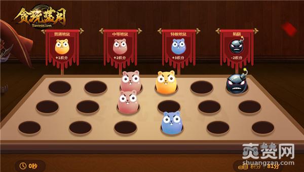 领完了礼包,接下来就到了《贪玩蓝月》的“疯狂打地鼠”的重头戏啦!跟着郭富城一起,左边一个普通地鼠,右边一个特级地鼠!活动期间还有免费打地鼠的机会哦,打到特级地鼠可获得3积分!但是打到陷阱就要扣除2积分啦,有趣刺激的打地鼠游戏