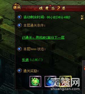 萝卜玩《北斗神兵超变版》镇魔谷每层都有一个BOSS,BOSS因为被诸葛军师镇压,只有正常BOSS血量的70%,所以镇魔谷中的BOSS一个也不能放过!每天首次达成通关任务,可领取当前层的通关奖励,通关奖励每日0点重置。玩家击杀各种BOSS,可掉落一些绑定元宝、内甲丹、升星石、倚天剑神石等奖励。
