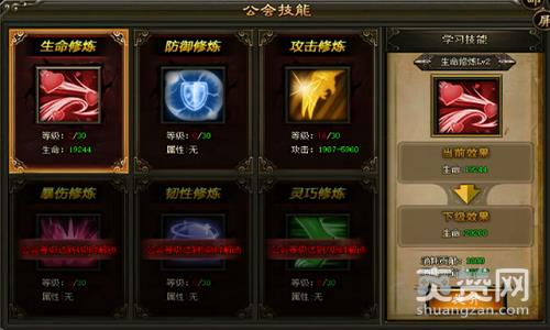 1.生命修炼 公会等级达到1级解锁 满级约增加40万血左右
