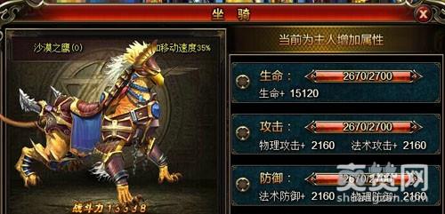 《主宰》坐骑不仅象征着玩家实力,更能为玩家提供不俗的属性加成以及战力加成。坐骑等阶越高,增加的战力越多,坐骑的外貌越是狂拽酷帅叼炸天。坐骑目前最高是十阶的“幻影魔龙”,在《主宰》里值得大家注意的是坐骑升阶所带来的战力提升不是很大,反道是通过“培养液”进行培养带来各种属性和战力的加成,这里大家不要认为升阶就不重要了,只有阶数越高培养等级才能提升的,而且等阶越高学的坐骑技能也就越多,可以更好的帮助各位英雄驰骋战场。