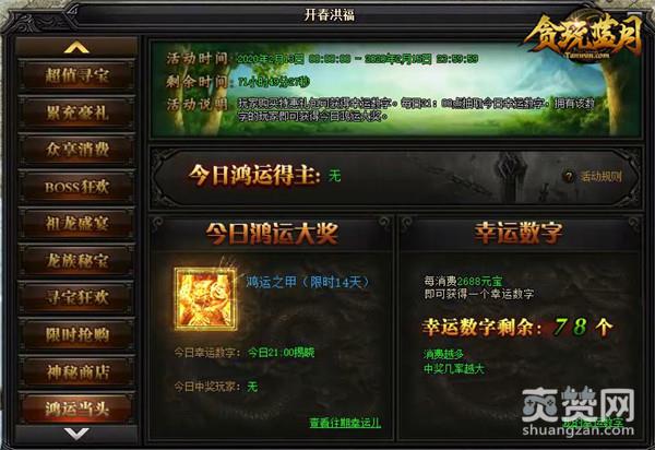 活动期间玩家每消耗2688元宝即可获得一个1-100之间的幸运数字。每日21点抽取今日幸运数字,拥有该数字的玩家即可获得今日鸿运大奖。《贪玩蓝月》甄子丹祝大家博得头彩,事事顺利!