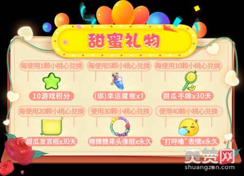 使用“小桃心”,前往活动中兑换“甜蜜礼物”吧!