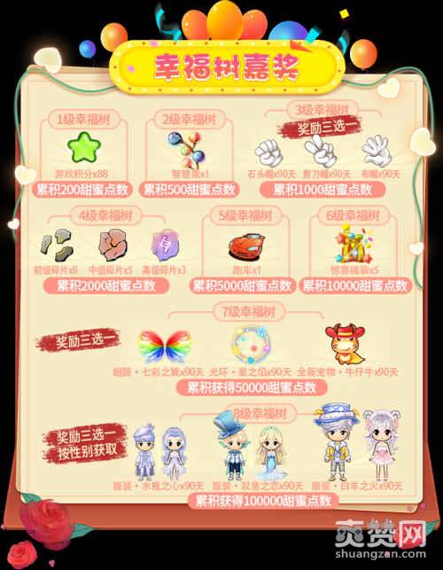 活动期间,所有玩家都可以获取一颗幸福树,并通过获得“甜蜜点数”使种子发芽并成长!