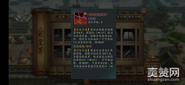 但如果获得了专属宝物“雌雄双股剑”后,刘备就能跃升为一名近乎全能的超强辅助。雌雄双股剑有两个效果,雌剑能让治疗范围扩充至全军,且能为友军释放一个抵挡一次伤害的护盾,如果释放时机正确,就能挡住敌将的强力输出技能;雄剑则能让刘备永久免疫封怒,不怕放不出技能,并且技能能让友军提升武力值与普攻伤害,让输出角色变得非常强力。拥有回血、免控、飙攻能力的辅助,如此全面,自然成了玩家们最爱的角色之一。