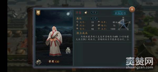 作为三国时期的三大仙人之一,于吉的技能“撒豆成兵”也是非常玄幻,效果是能为兵力损失最多的三支友军召唤出一批基于自己智力值的部队。召唤一波军队看似神奇,但是召唤出来的士兵强度不高,血量很低,还不能享受到治疗效果,敌军很轻松就能将其瓦解了,很难起到逆转战局的作用。