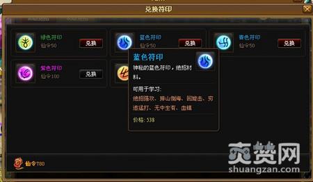 萝卜玩《神仙道》符印掉落位置:绿色符印——月牙城火焰山(9),蓝色符印——月牙城玄净寺(3),青色符印——蓬莱城天境(9),紫色符印——特殊副本(神秘千手佛),黄色符印——特殊副本(神秘巨灵神)。符印兑换方法:点击游戏右下方的绝招图标兑换符印:50个仙令可以兑换任意种类符印。