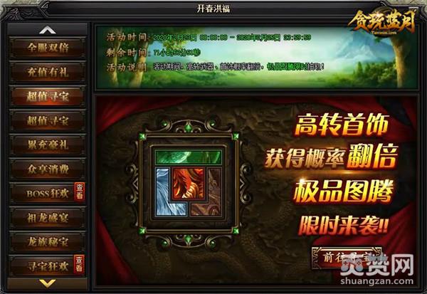 极品图腾,超强神器等你来寻得!活动期间,高转武器、首饰概率翻倍,寻宝次数达指定次数,即可领取额外大礼!
