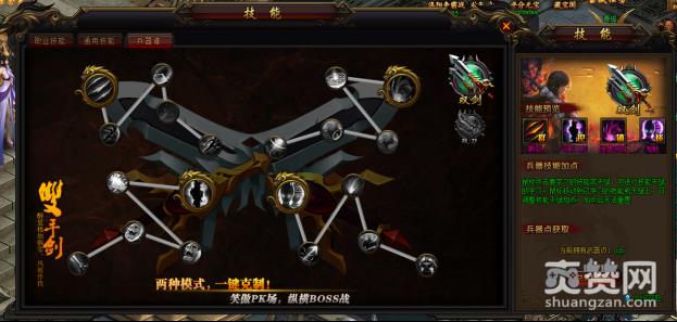 萝卜玩《北斗神兵超变版》兵器谱通过主界面技能按钮打开:双剑与双刃两种模式,一键克制,笑傲PK场,纵横BOSS战。