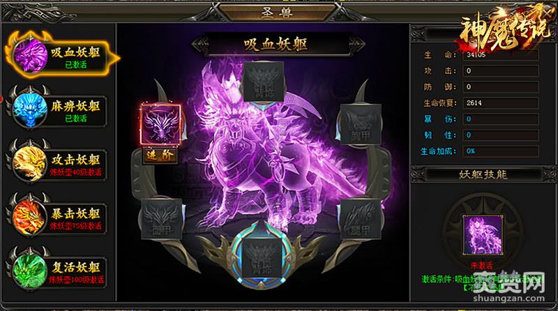 想要将圣兽的属性加成到主角身上,可以利用炼妖系统。将BOSS收入炼妖壶中炼化成妖丹或者妖器,穿戴妖器可以提升主角的各项属性,成套的妖器还会激活妖躯技能,即可实现属性加成 。