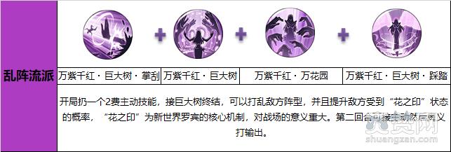 技能搭配一:单终结,打乱敌方阵型并增加“花之印”概率。