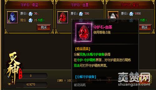 萝卜玩《灭神》守护石除了通过守护装备分解获得之外,还可以通过商城购买获得。