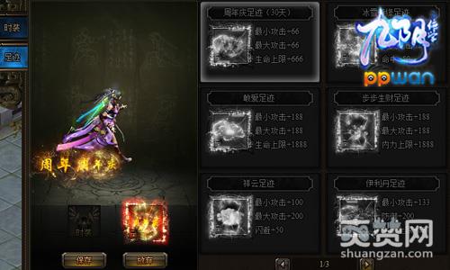 值得一提的是,在ppwan《九阴绝学》中当玩家收集齐300张周年庆足迹卡片即可合成周年庆足迹卡激活周年庆足迹。在获得炫酷绝版足迹外观的同时还可以得到大量的属性加成,增加最小攻击、最大攻击以及生命上限,伴随玩家一起仗剑江湖!