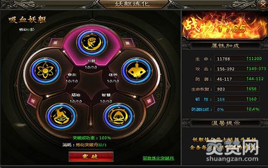 攻击妖躯 炼妖壶40级激活 主要提高防御百分比加成