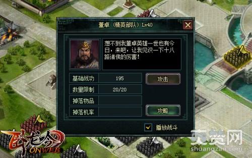 在《卧龙吟》所创造的三国世界中,你将在董卓势力-长安之战中首次面对这个历史上臭名昭著的人物。当你对他发出挑战的声音,他的回答是:想不到我董卓英雄一世,也有今日,来吧,让你见识一下十八路诸侯的厉害!