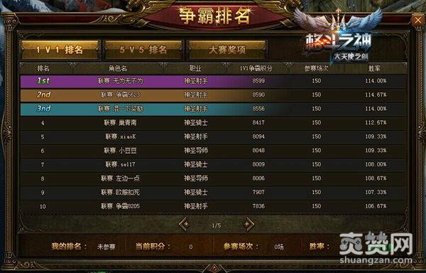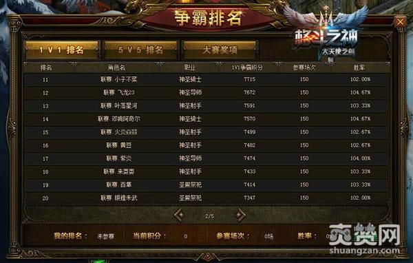 37《大天使之剑》全国联赛1V1前20名名单一览: