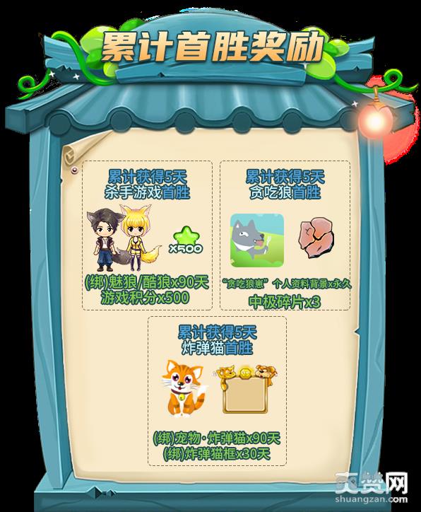 活动期间,每天获得不同游戏首胜即可领奖!当累积5天分别完成不同游戏的首胜任务,还能领取额外奖励!