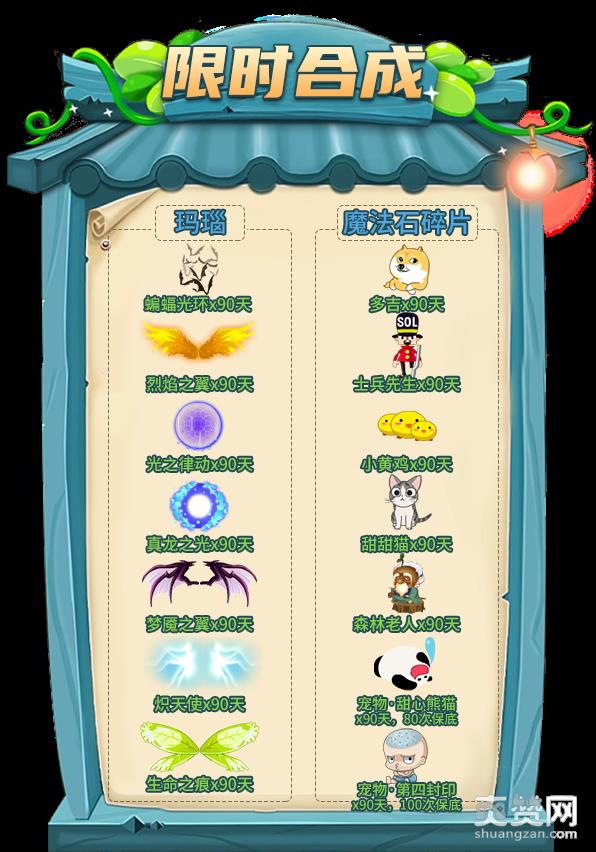 活动期间,使用魔法石碎片、玛瑙可限时合成以下物品: