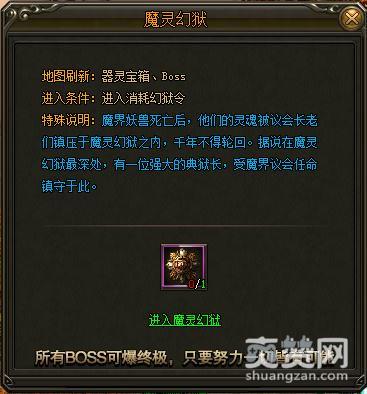 魔灵幻狱是产出器灵培养材料的一种玩法。开服第十天、并且玩家达到320级时开启该玩法。魔灵幻狱玩法地图需要消耗门票,玩家可以使用元宝购买。