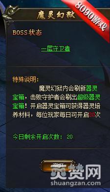 魔灵幻狱共有五层,玩家可通过传送阵往返于各层之间,相应的,每一层都会有不同的守护Boss,越高层Boss击杀后掉落的超级器灵宝箱越多。