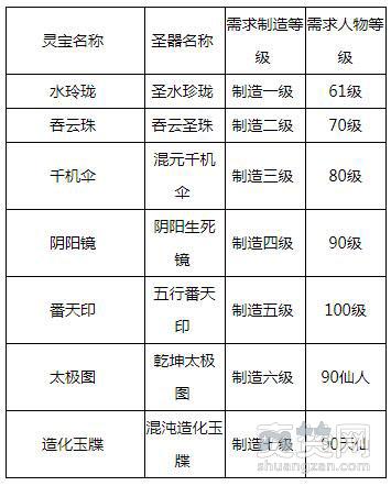 根据制造等级不同,可以制造不同等级的灵宝。每个等级的灵宝制造需要相应的物品,在“灵宝制造”面板上会显示出所需物品。在制造过程中可以选择增加鸿蒙紫气可提高物品成为高品质的几率。