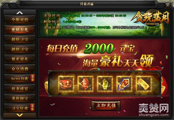 活动期间,每日充值满2000、20000元宝!还能领取超值豪华大礼。