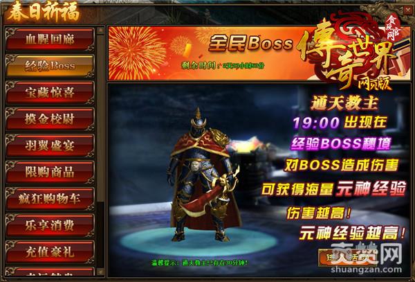 活动期间,每天19:00将在BOSS秘境中刷新BOSS,玩家对BOSS造成的伤害,将在活动结束后转换成元神经验并发放;小编友情提示:可使用攻击药水,暴击药水的药品来获得更高的伤害,可以获得更多的经验哦~