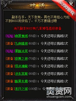 以上就是我们炎黄大陆副本玩法的全部内容啦,希望可以帮助到玩家们更快速地升级,你还在等什么,赶快来加入我们8090《炎黄大陆》游戏中来吧。