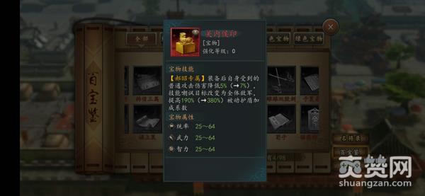 宝物的属性效果极其契合郝昭,让自身武力、统率和智力都得到一定提升,并提高被动护盾的加成系数以及对敌军的普攻有一定的伤害减免,这些加成无不是针对性地提升了郝昭的防御能力,而且主动效果也由嘲讽前排敌军加强为嘲讽全体敌军,控制能力也得到了巨额增幅,让己方队伍里的脆皮输出不再怕被敌将击杀,可以放心输出!