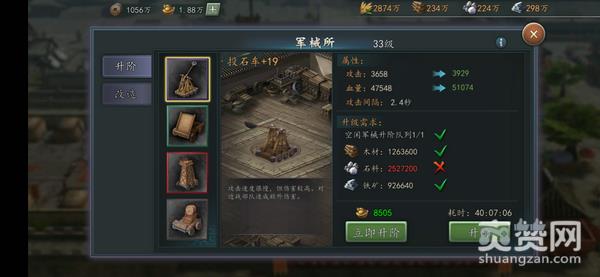 以上便是《三国志2017》的五大军械和他们的用途了,针对PK,自然是盾车或战鼓更加强劲;在攻城时,当然是选择能对主城繁荣、城墙造成额外伤害的投石车或井栏;而木牛流马水战虽然不具备战斗属性,不过优秀的负重量使其相当适合给采集部队使用,更高的采集效率也能提前采集完毕,安全返回。各位《三国志》的玩家,不知道你们最钟情哪种军械呢?